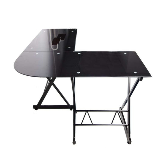 Escritorio En L Madrid Metal Vidrio Rta Color Negro