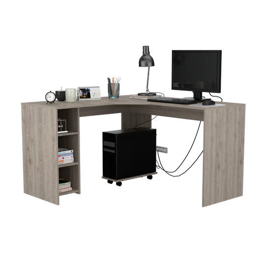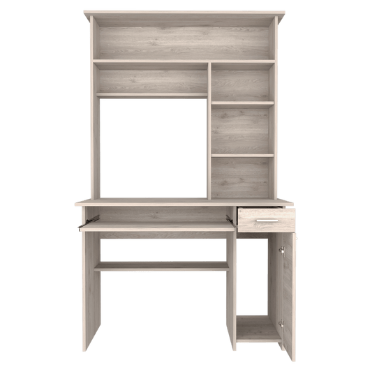 Escritorio Zafir, Humo, con Un Cajón y Cinco Entrepaños