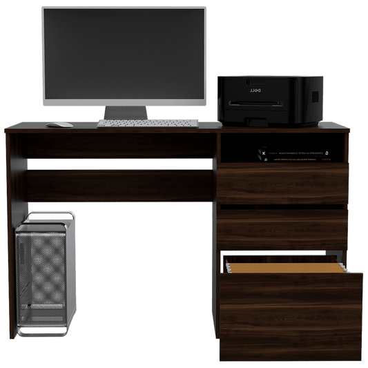 Escritorio Venus, Chocolate, con Dos Cajones Multiusos y Un Cajón Archivador Adicional