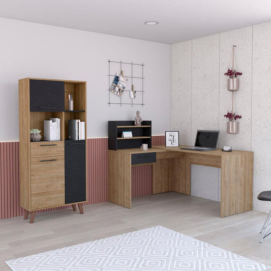 Combo Para Oficina Sandoval, Miel y Wengue, Incluye Escritorio y Biblioteca