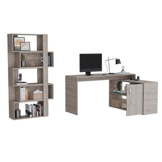 Combo Para Oficina Freky, Humo, Incluye Escritorio y Biblioteca