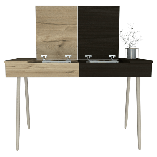 Escritorio Austin, Café Claro y Wengue, con Dos Cajones Amplios y Patas Metálicas