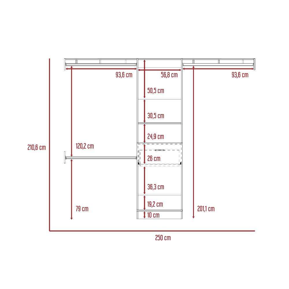 Características: Closet Abierto Manchester, con espacio para almacenar zapatos, ropa y otros accesorios. Tiene tres tubos metálicos y un cajón