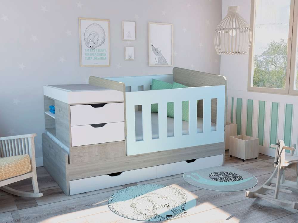 Características: Cama Corral Rosario, para colchón de 100 x 190 x 20. Incluye cambiador, cajones para almacenar pertenencias, corral móvil con herrajes de seguridad y bordes