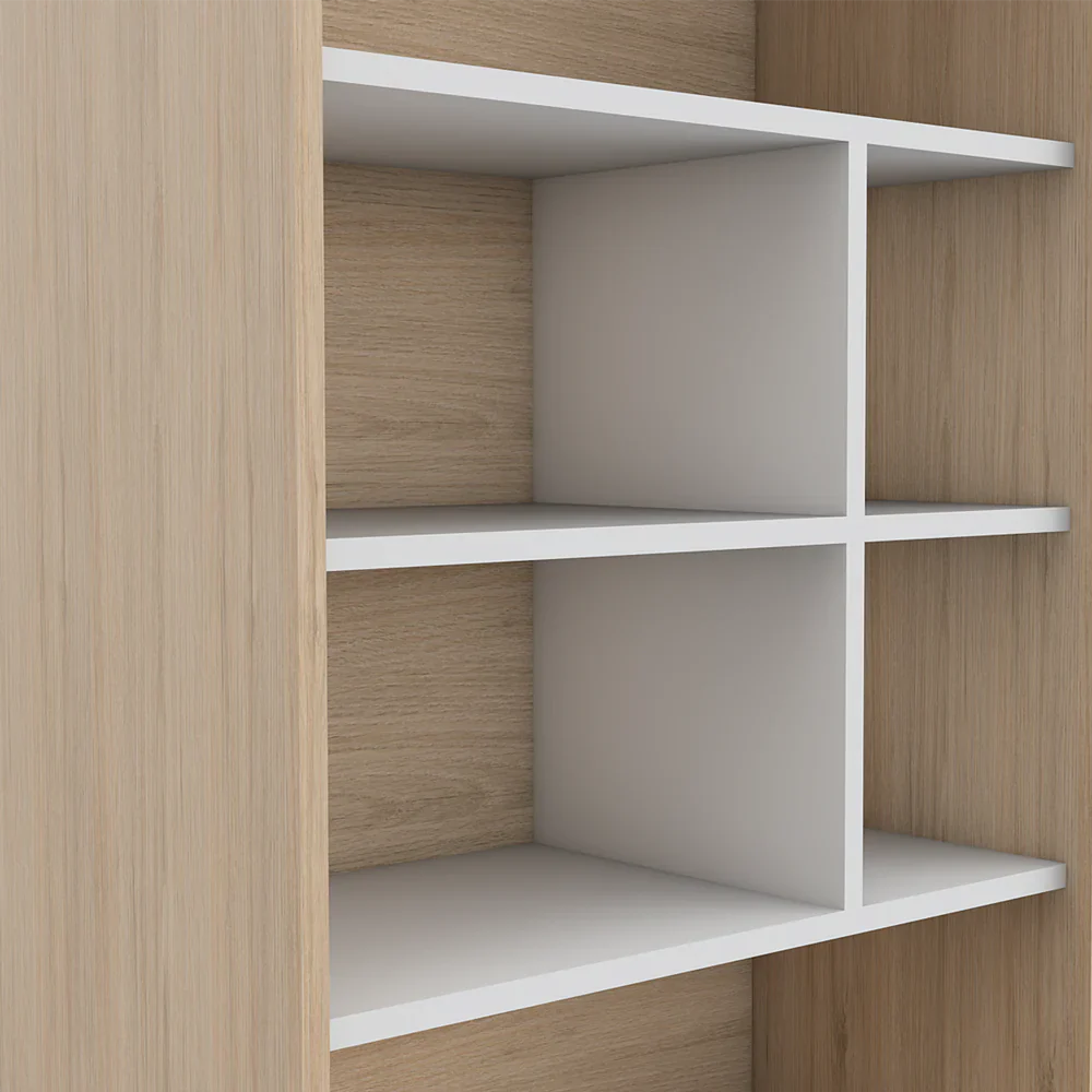Características: Biblioteca con diseño moderno, entrepaños para ubicar libros y múltiples objetos