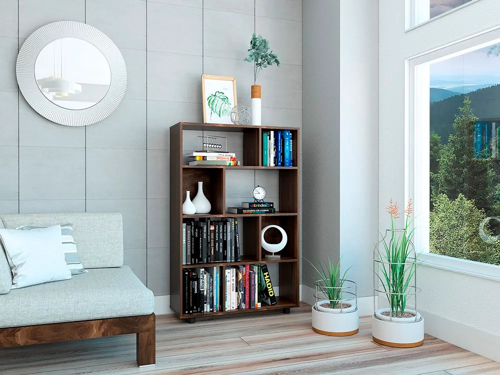 Características: Biblioteca Indira, tiene buena capacidad de almacenamiento, espacio para decorar con objetos decorativos, libros, revistas u otros