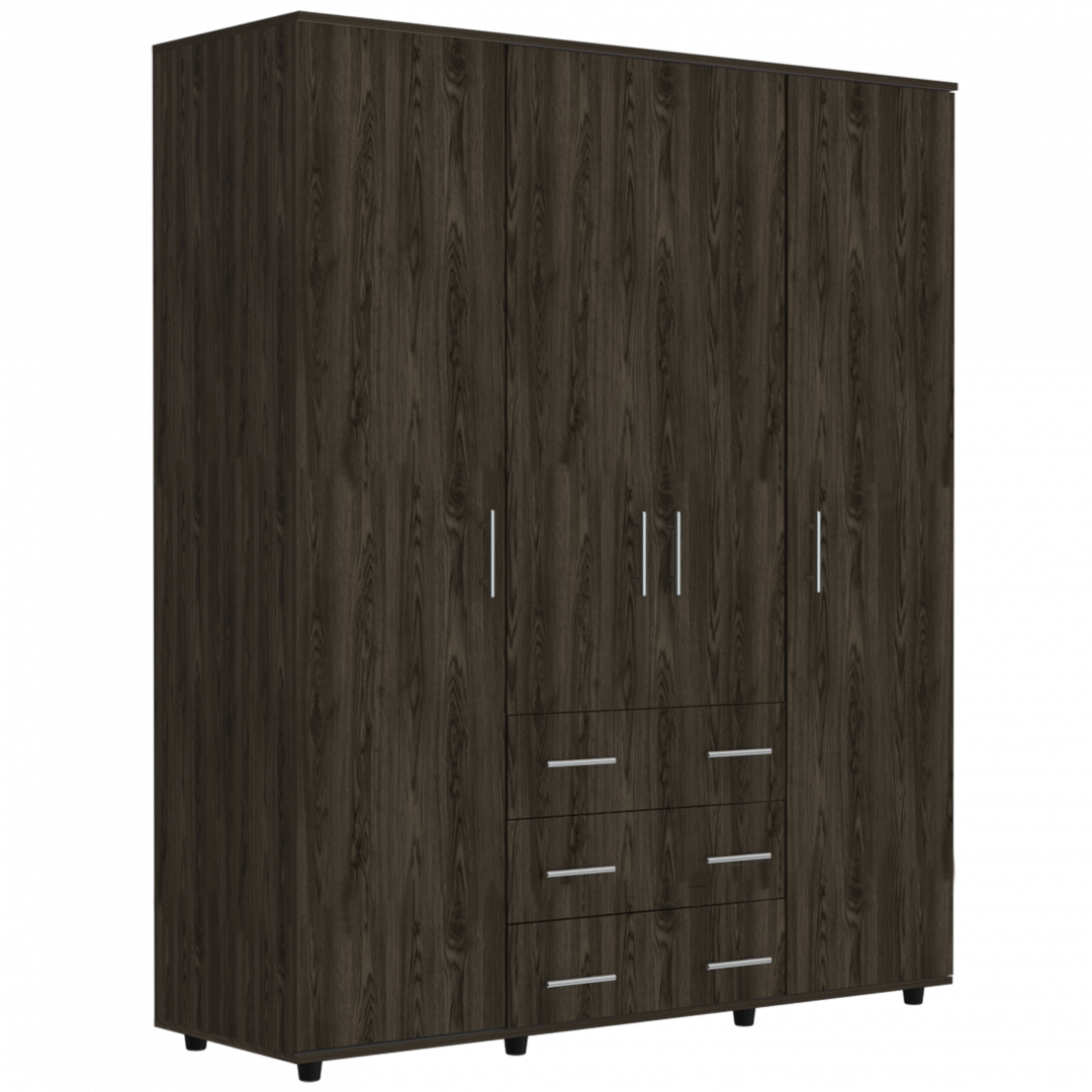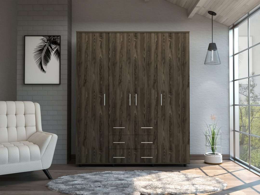 Características: Closet con diseño funcional, con cuatro puertas abatibles, tres cajones organizadores, amplios espacios para guardar ropa zapatos y/o accesorios, cuatro tubos para colgar ropa
