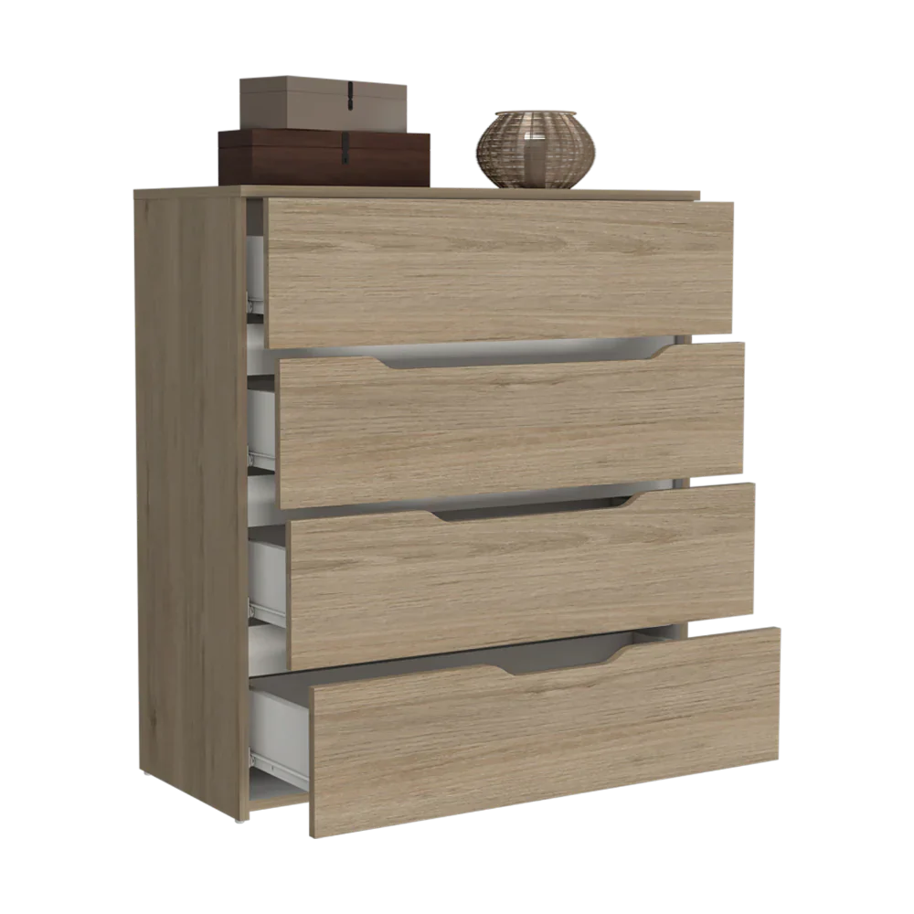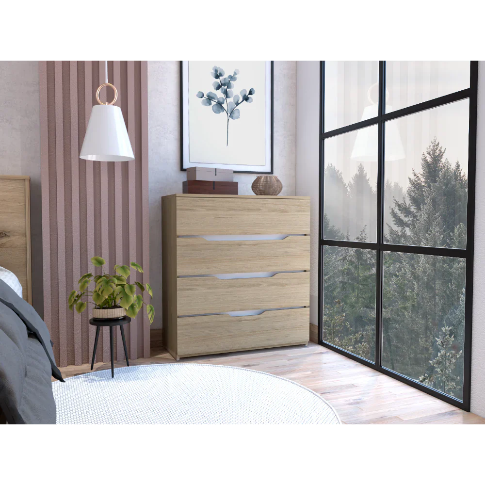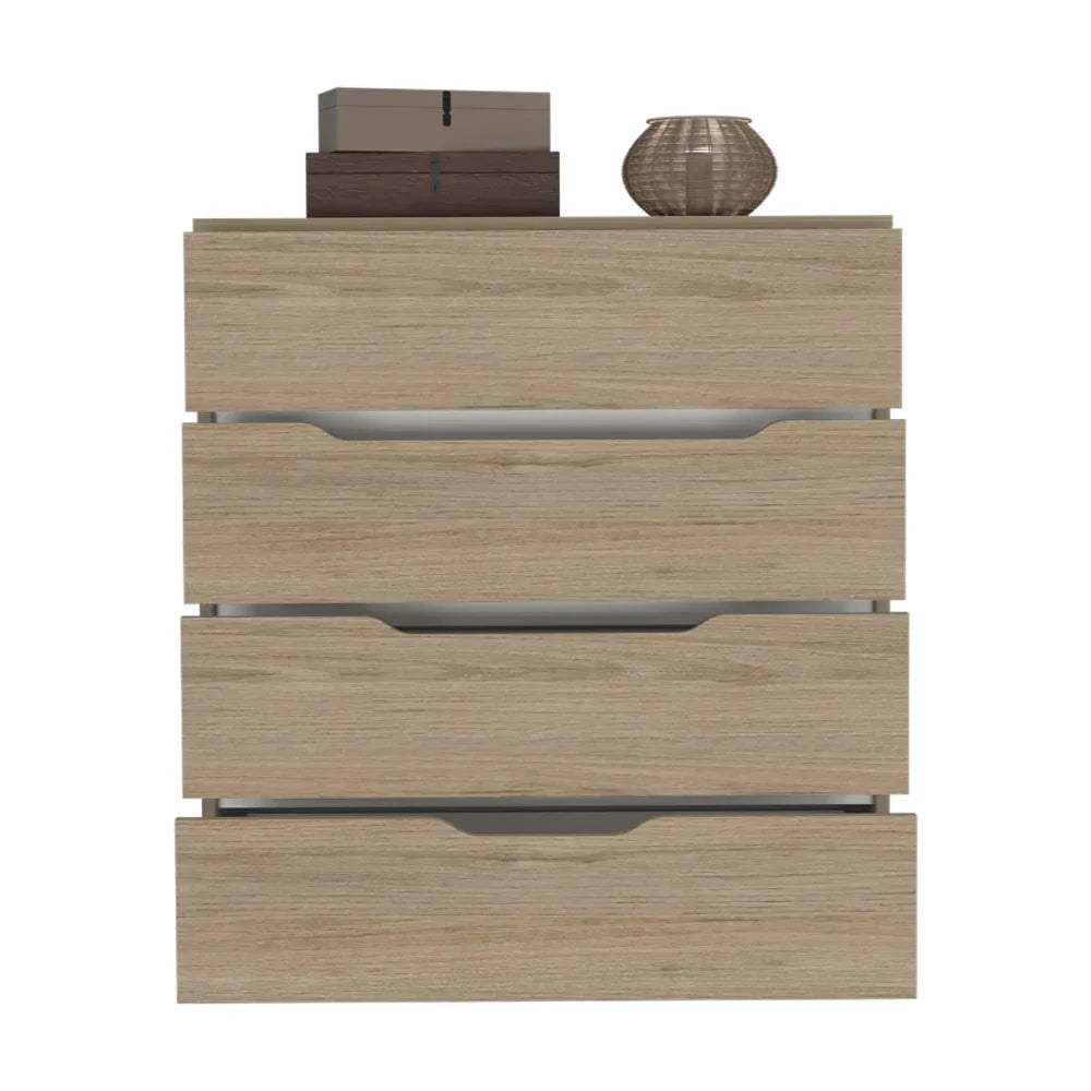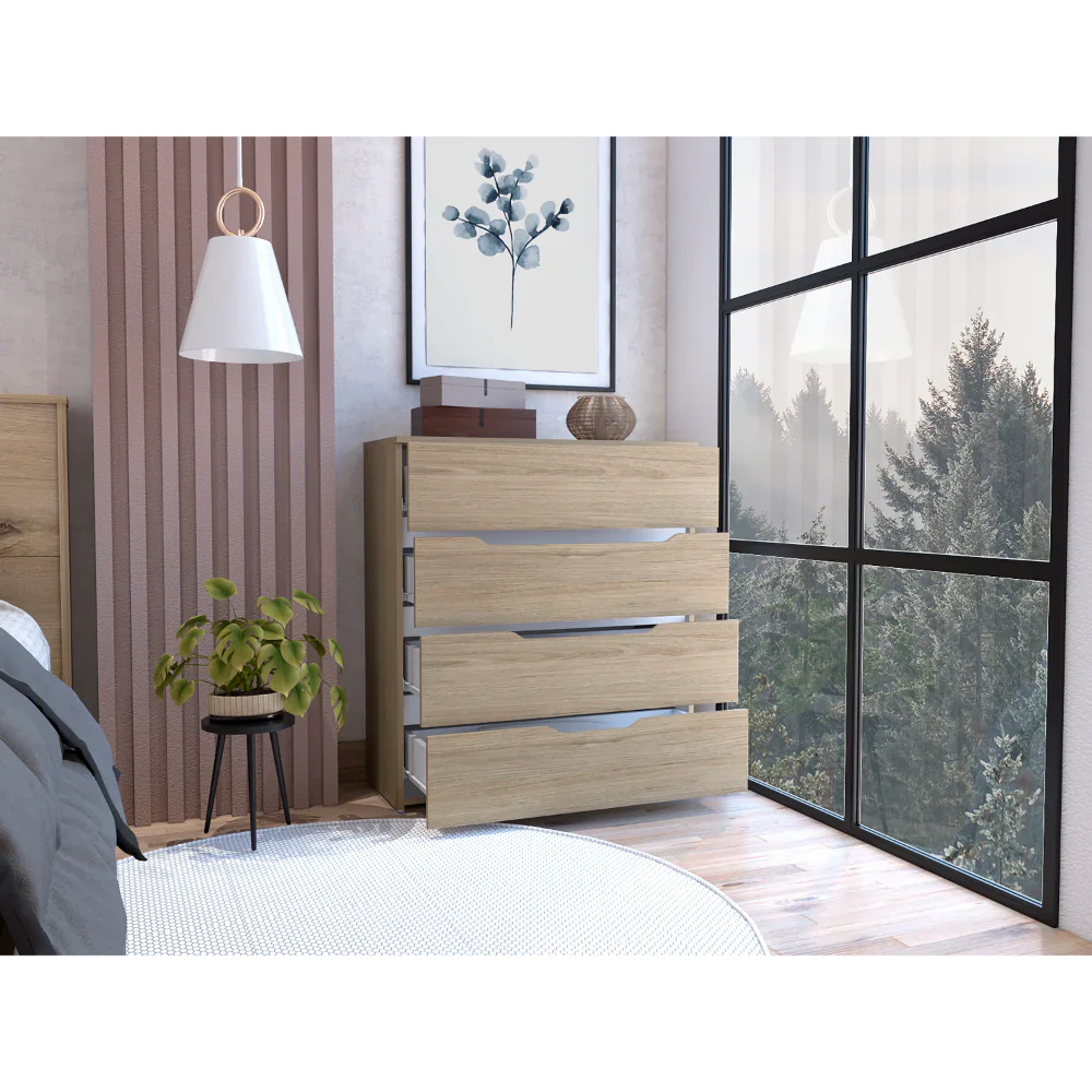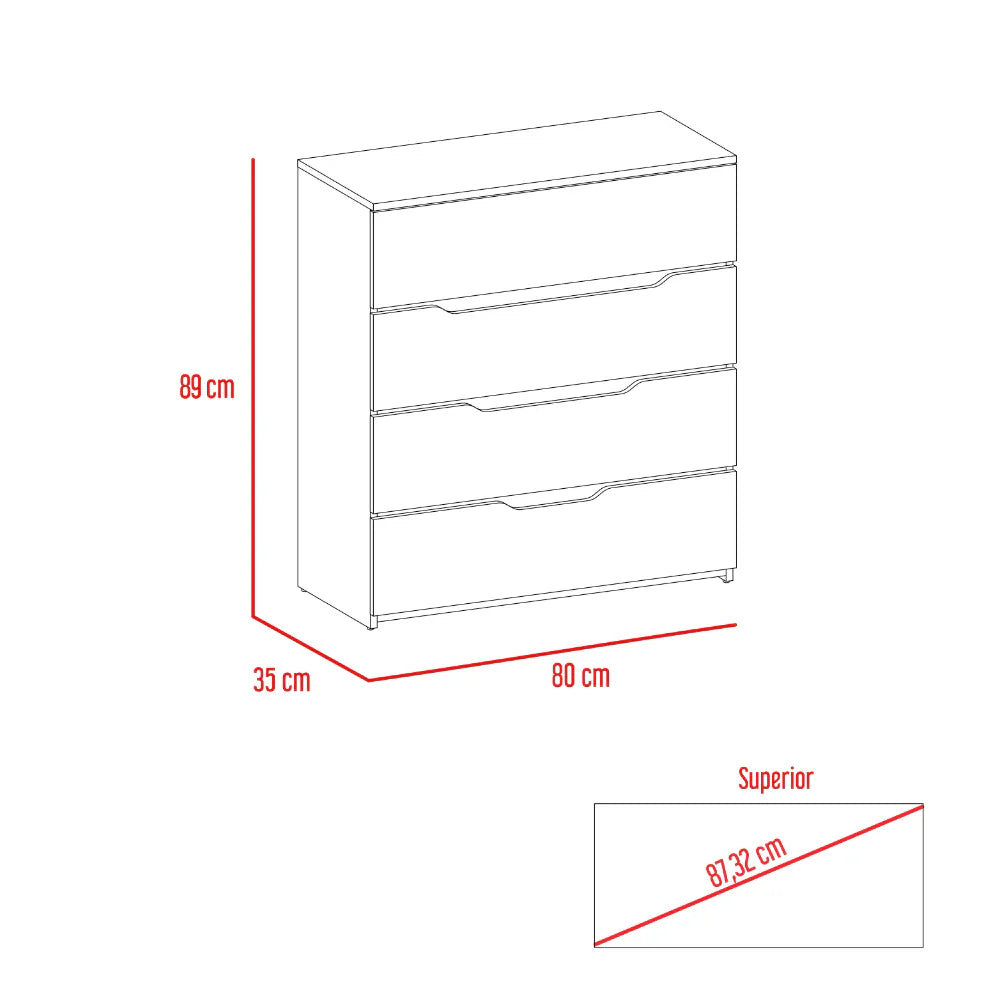 Características: Cómoda con tres amplios cajones deslizables para guardar objetos personales, espacio superior para objetos decorativos, diseño moderno con combinación de colores