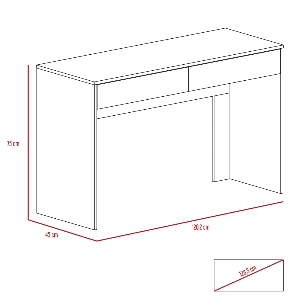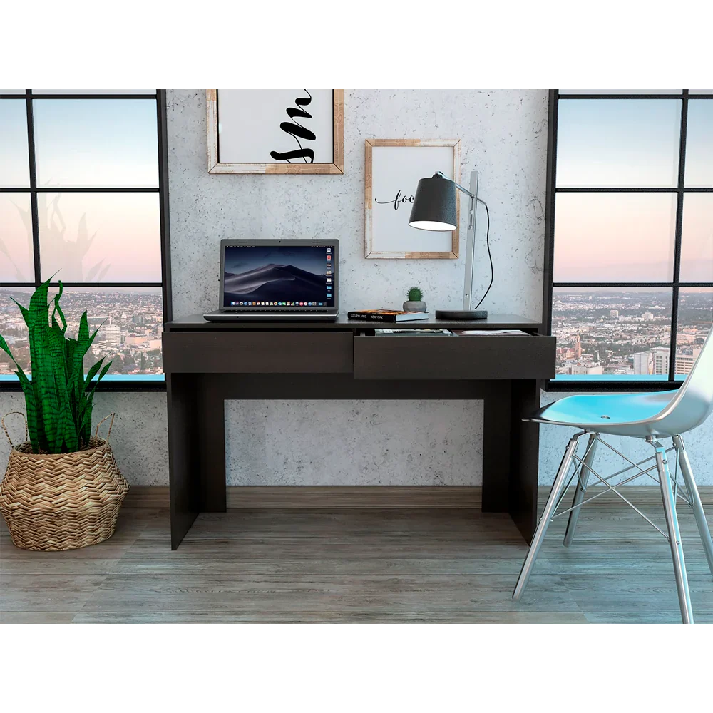 Características: Escritorio con amplia superficie de trabajo, con dos cajones