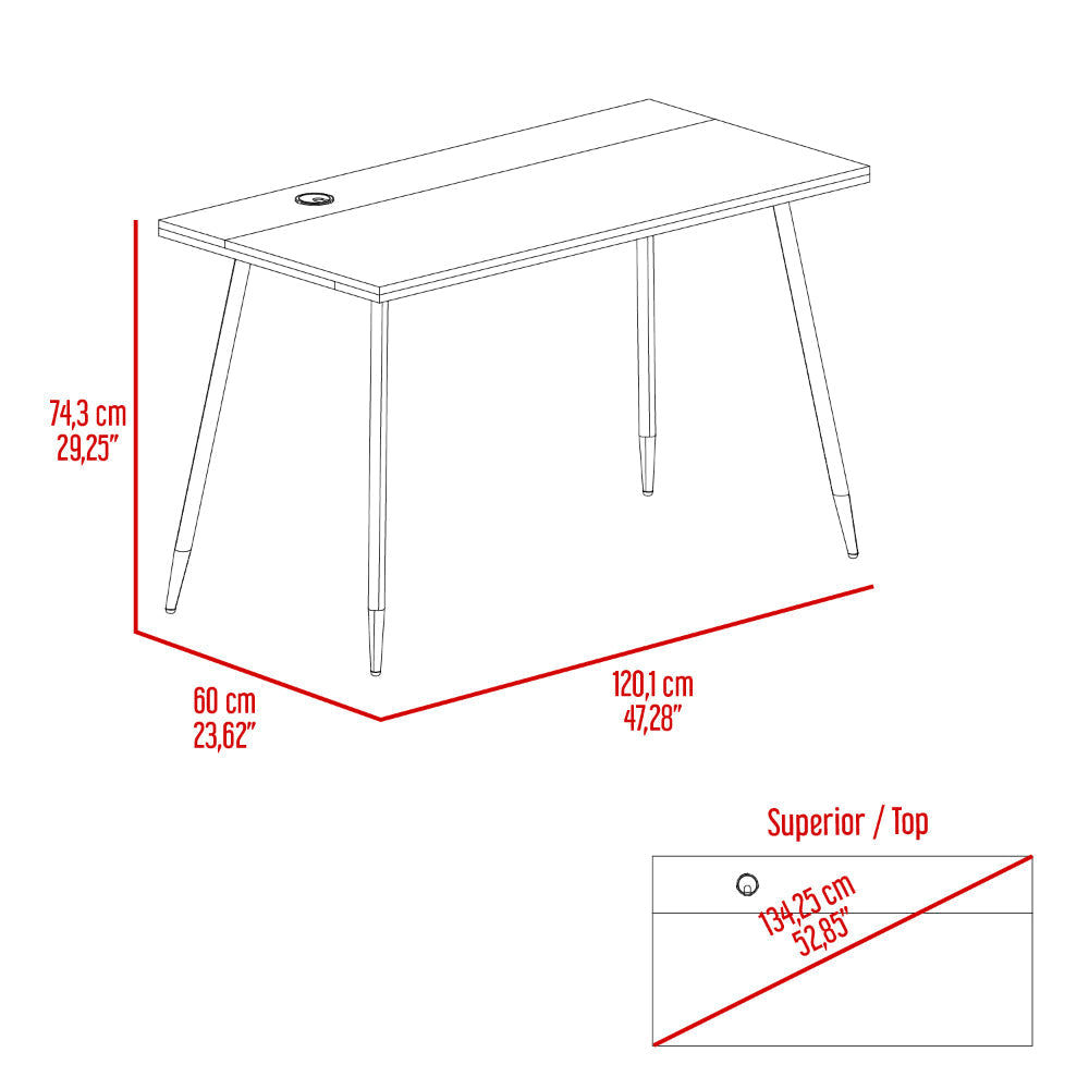Escritorio, con diseño moderno, patas metálicas negras, amplio espacio de trabajo, de fácil ensamble.