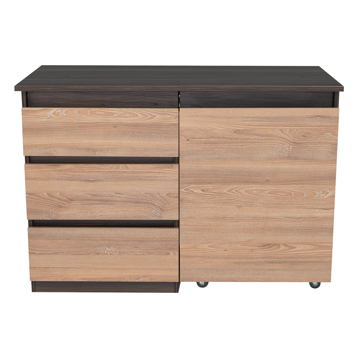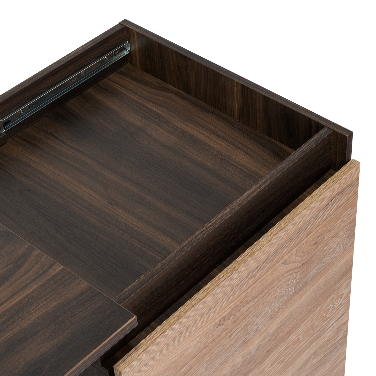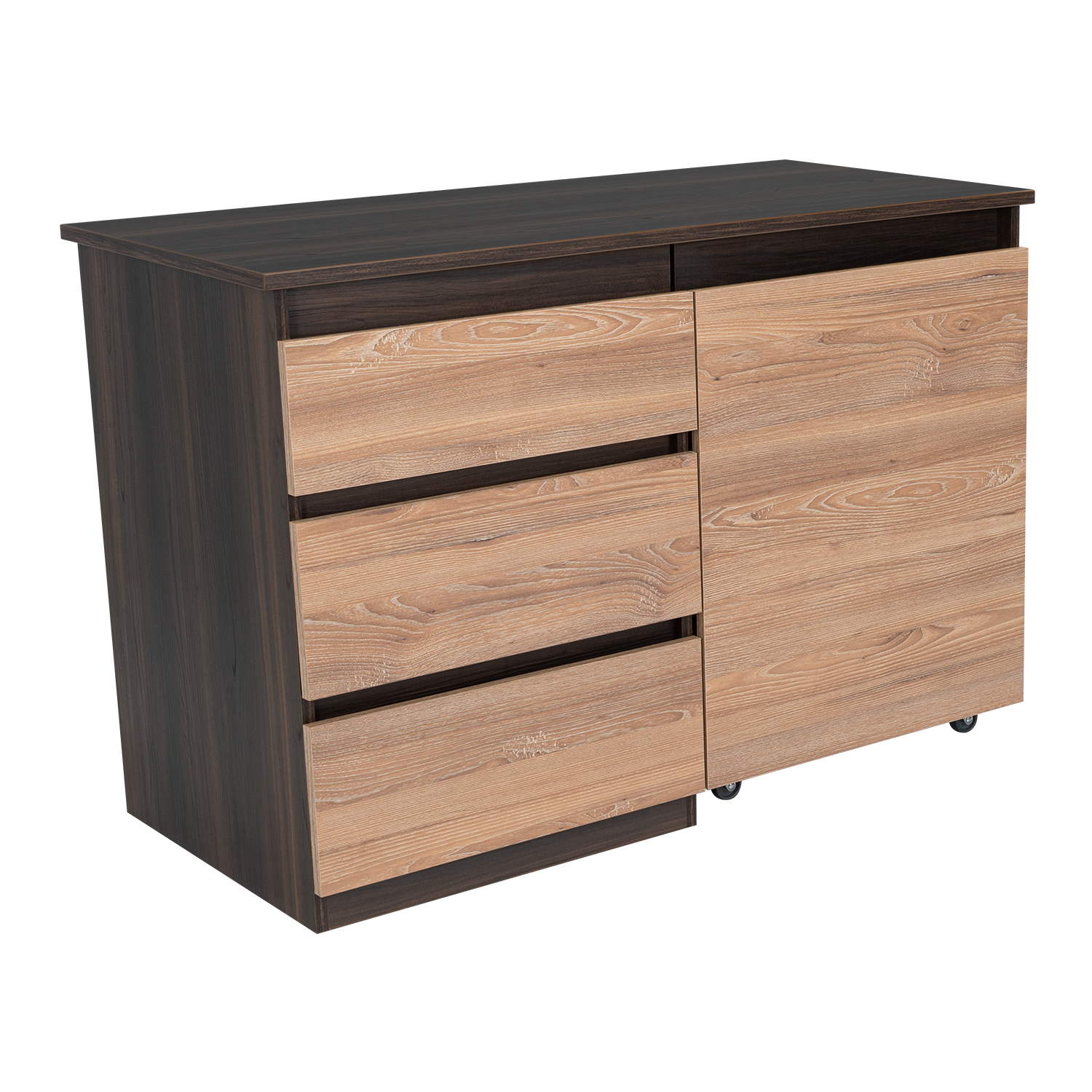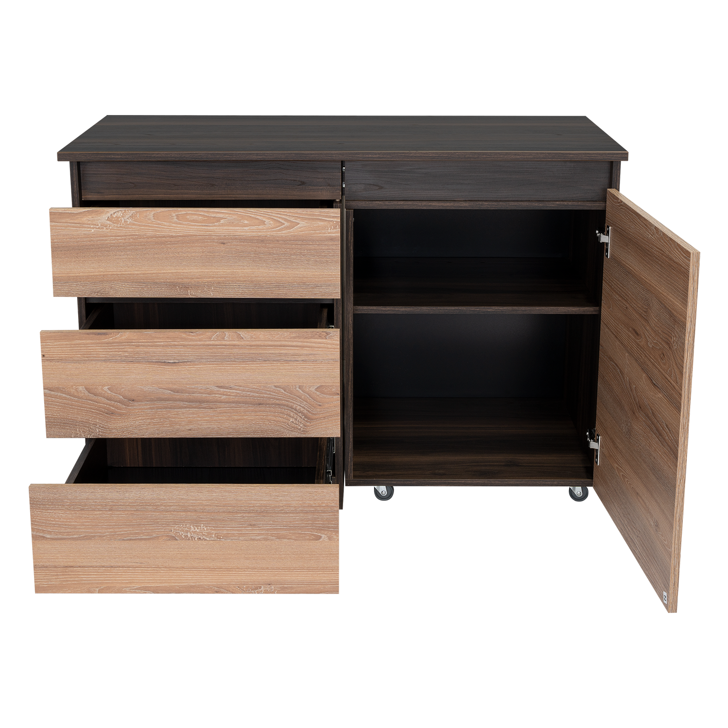 Escritorio, con modulo derecho movil que permite cambiar funcionalidad del mueble, tres cajones de extencion total