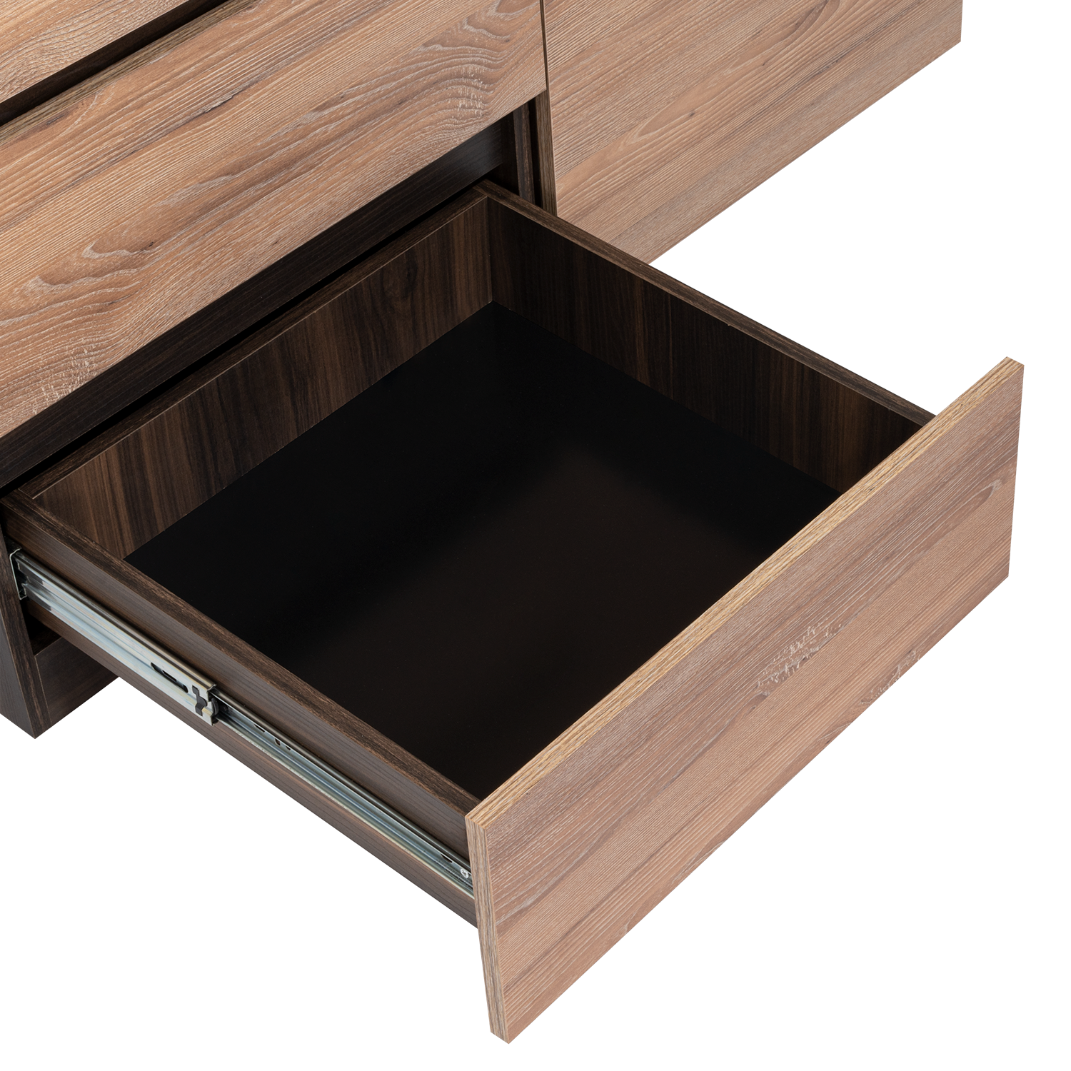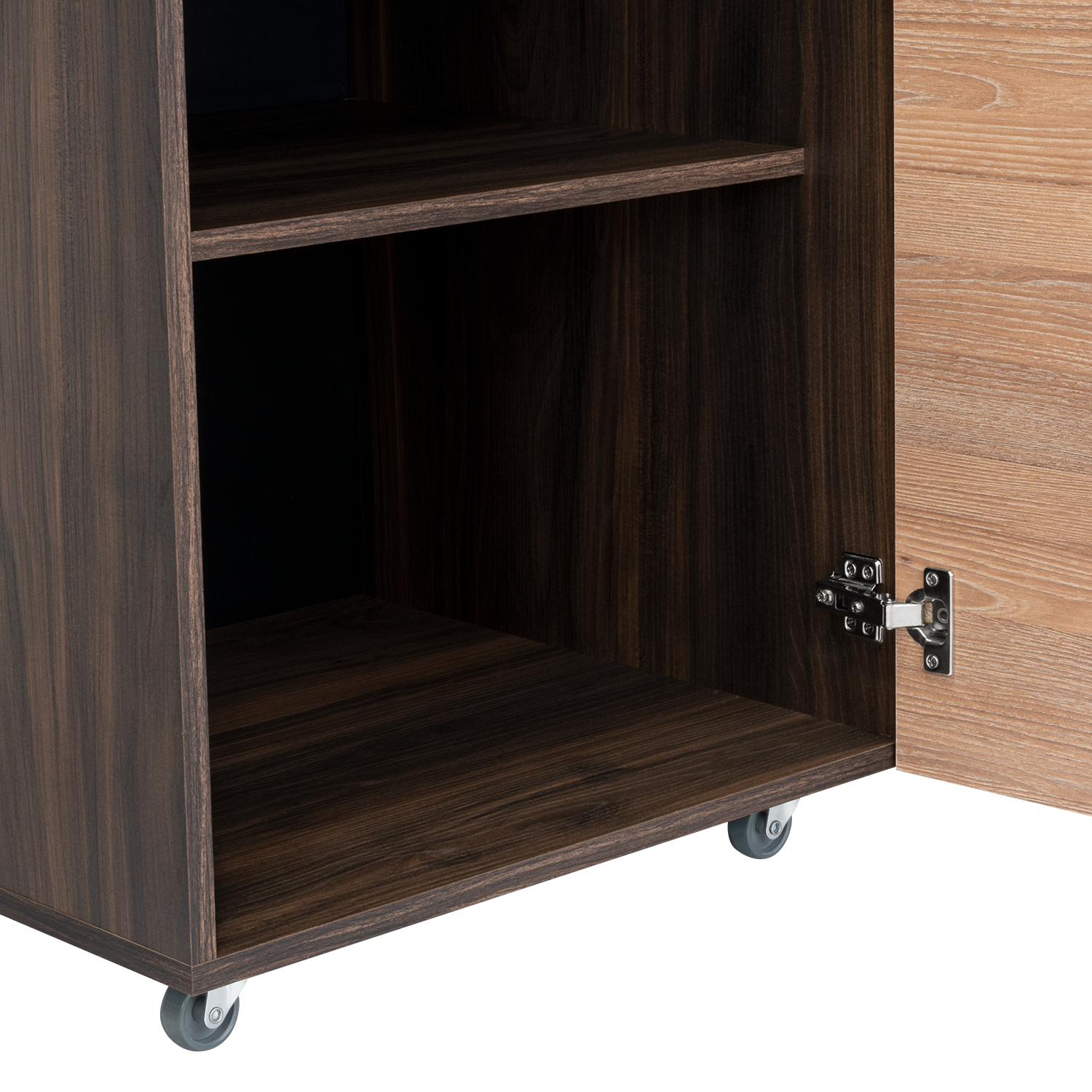 Elaborado en Madera aglomerada MDP, recubierta con láminas melamínicas de excelente calidad, en color Caoba y Miel.