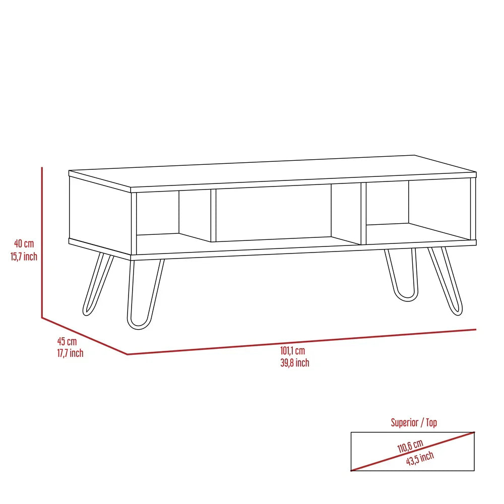 Características: Mesa de centro amplio espacio para objetos decorativos, con diseño moderno y patas de acero