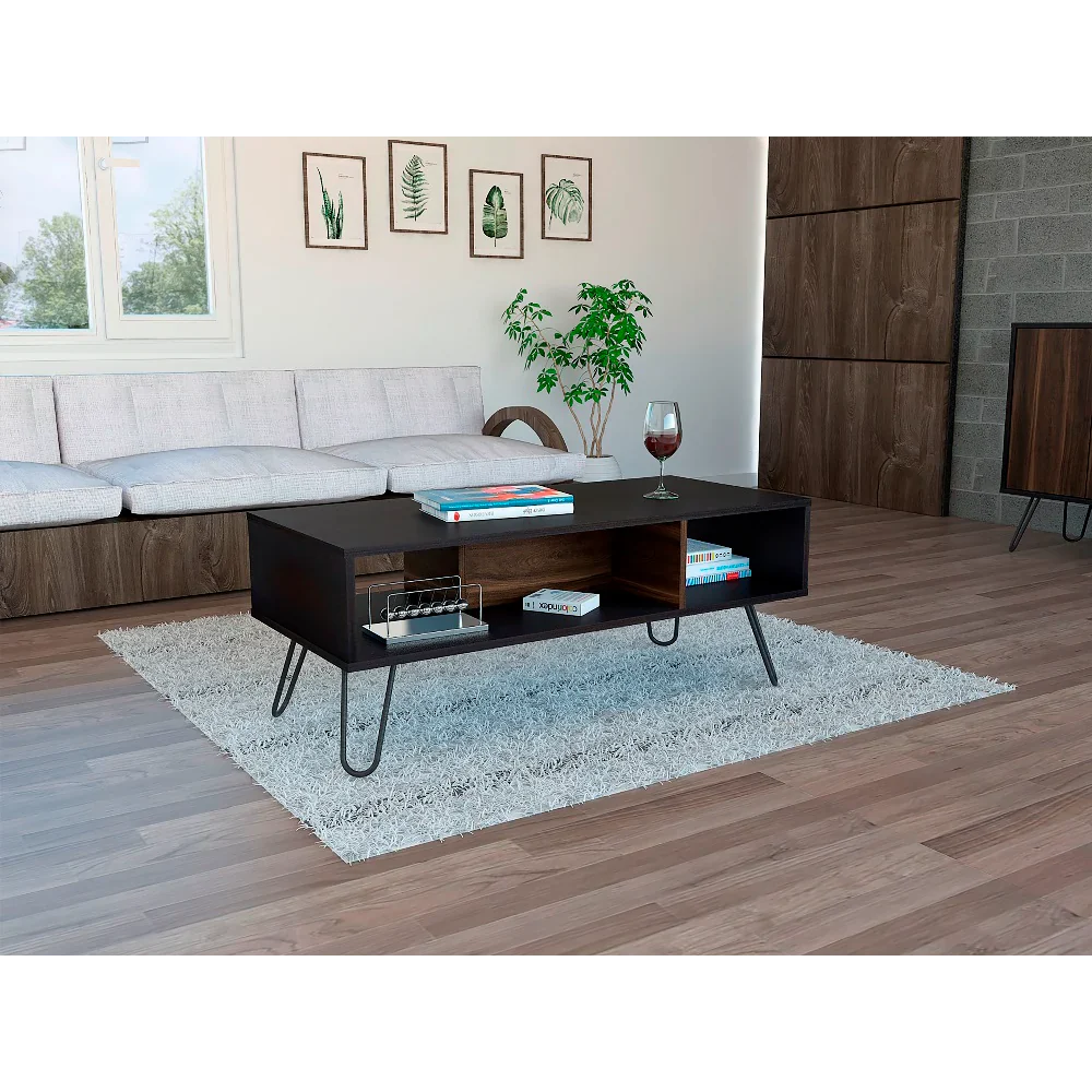 Características: Mesa de centro amplio espacio para objetos decorativos, con diseño moderno y patas de acero