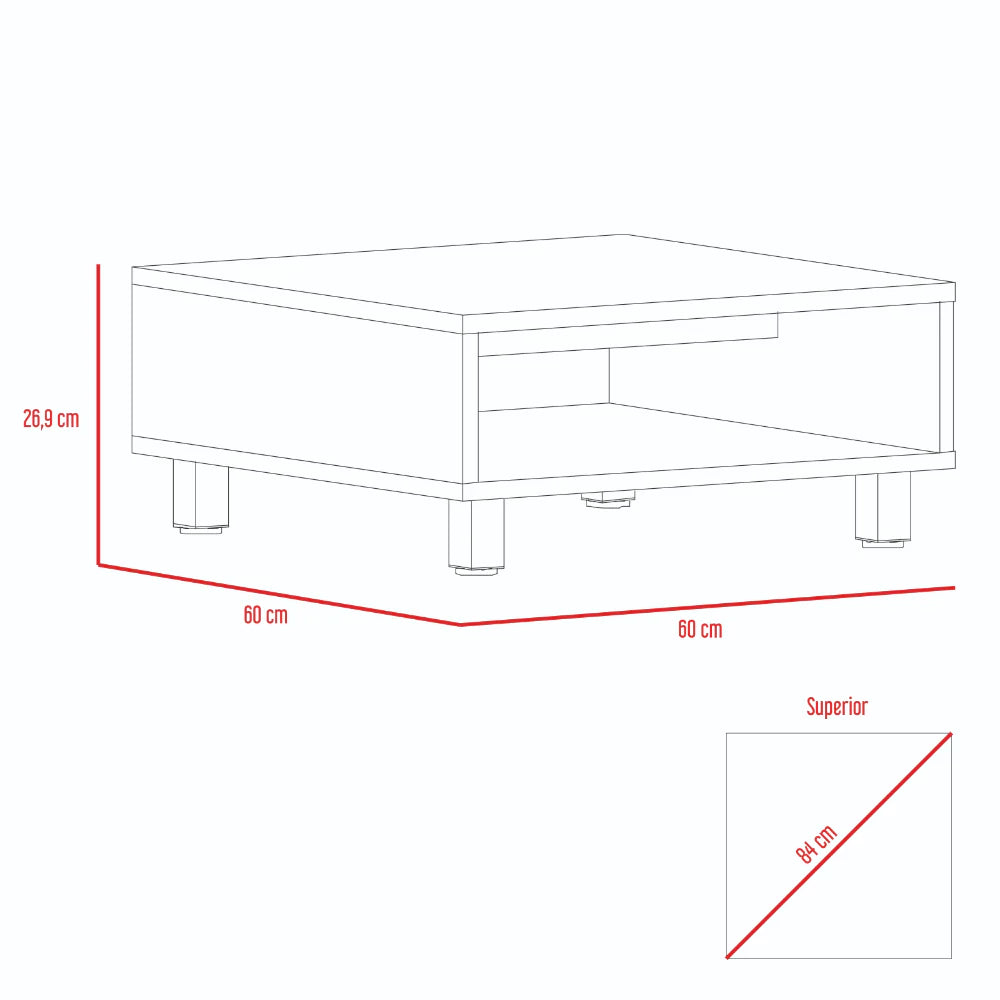 Características: Mesa de Centro Eclipse, con diseño moderno, espacio central para colocar objetos decorativos, patas en acero cromado con nivelador