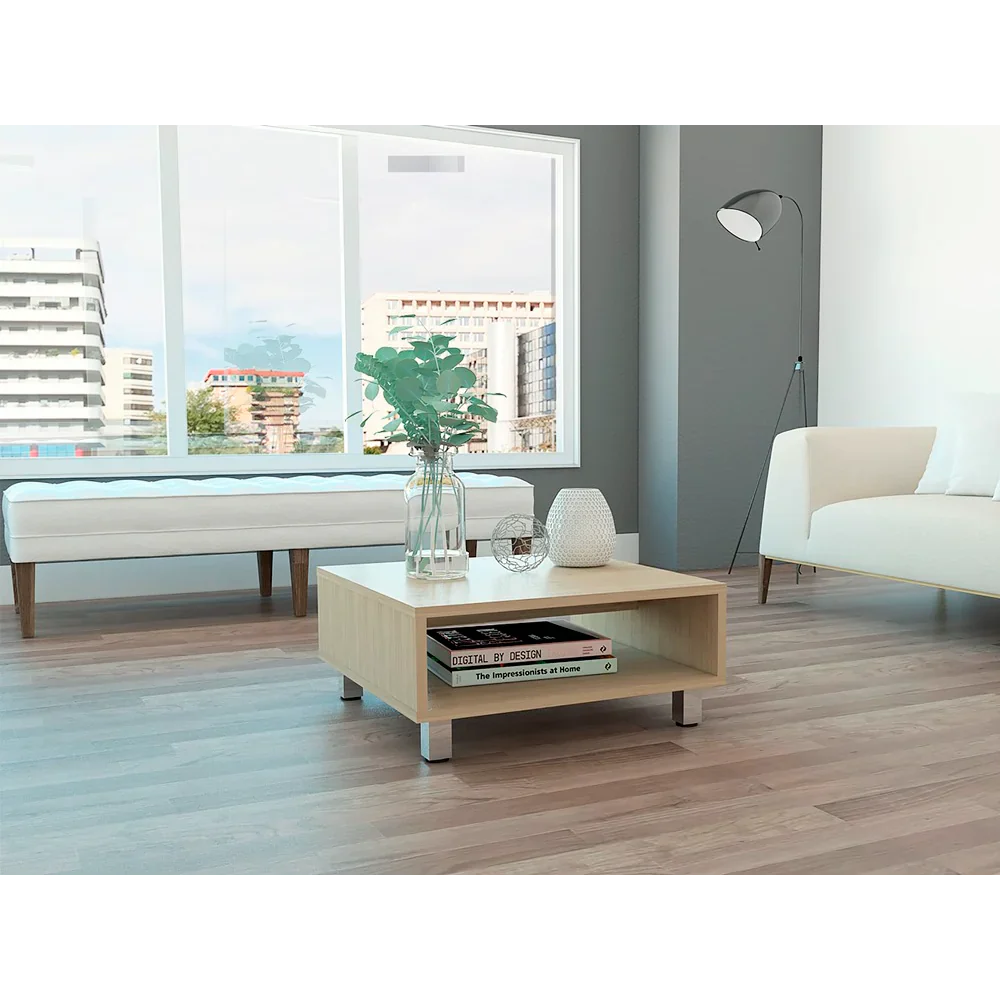 Características: Mesa de centro con diseño moderno, espacio central para colocar objetos decorativos, patas en acero cromado con nivelador, de fácil instalación