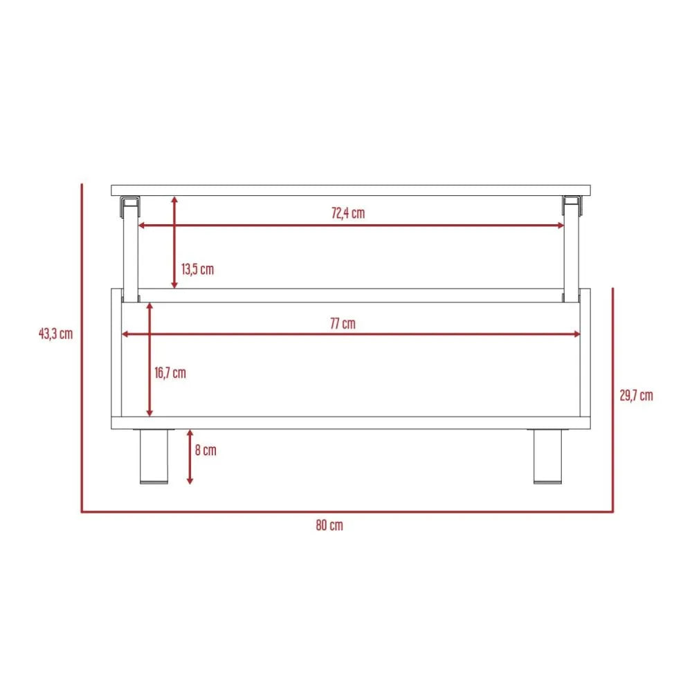 Características: Mesa de Centro Extensible, espacios inferiores para colocar objetos decorativos, libros u otros, patas metálicas