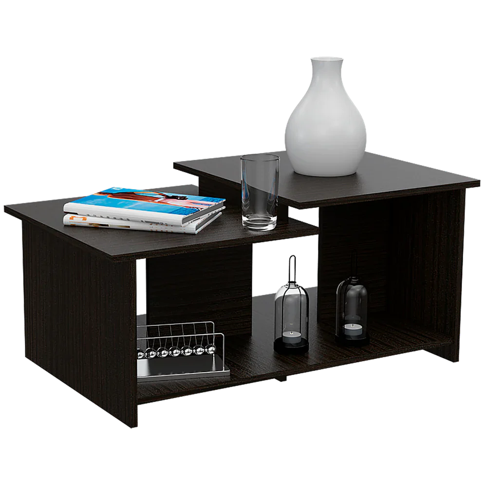 Características: Mesa de centro con diseño moderno, espacios para colocar objetos decorativos, libros, revistas y otros