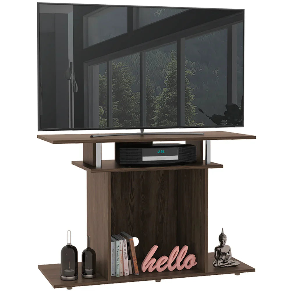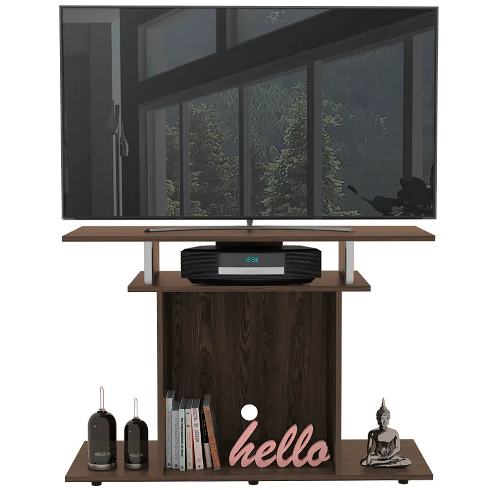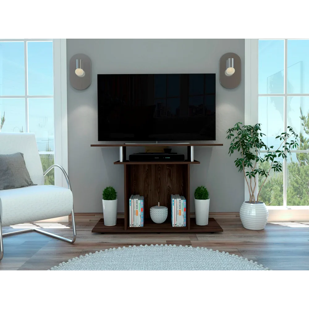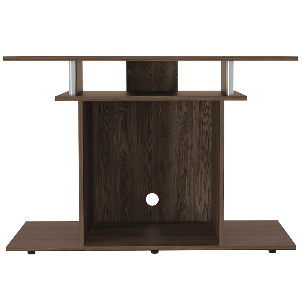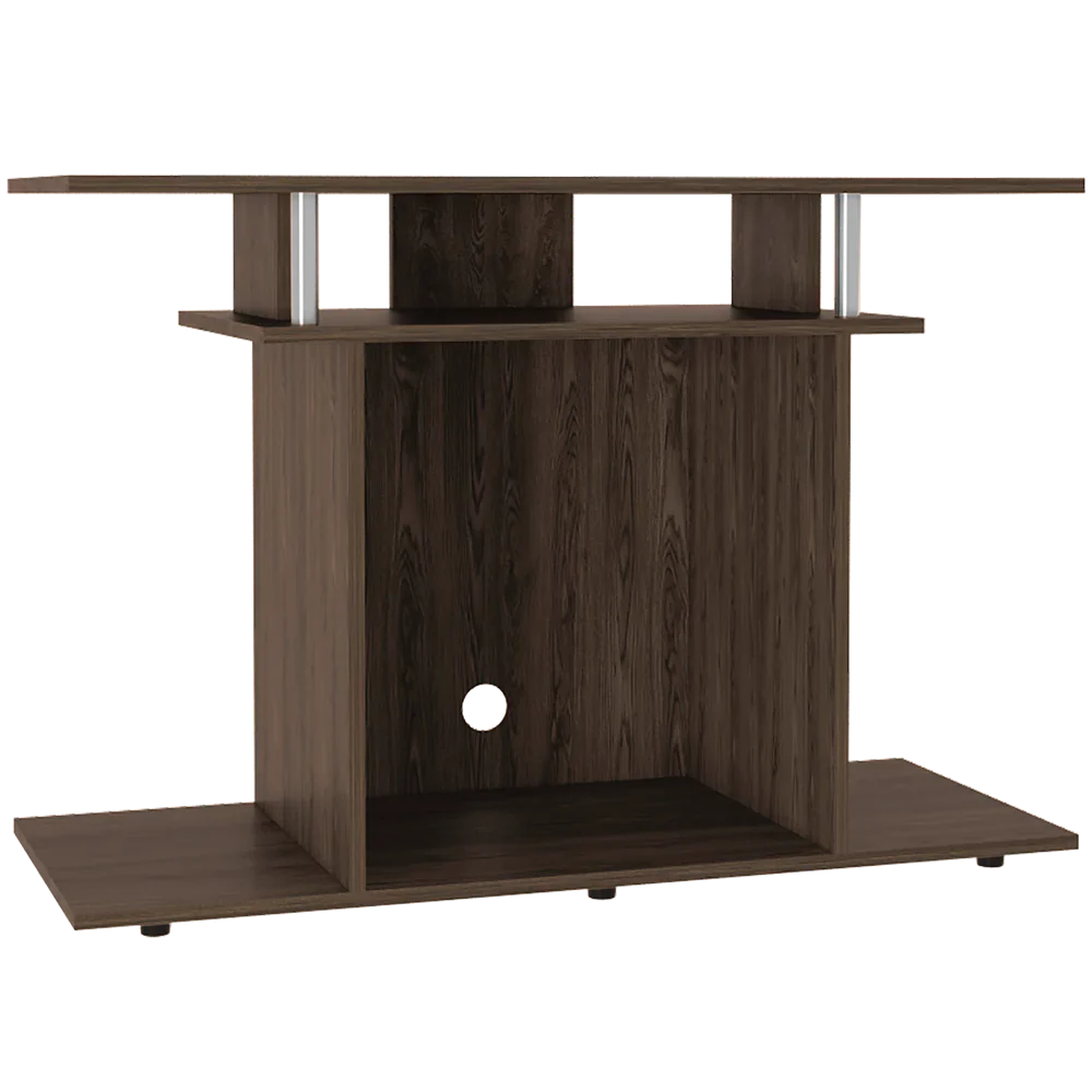 Características: Mesa para TV de 43'' máximo, múltiples entrepaños y superficies para ubicar objetos, espacio para unidades de videos o consolas de juego