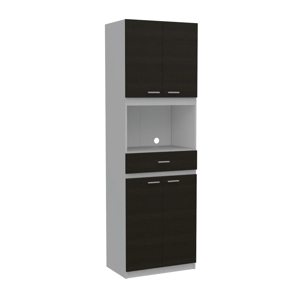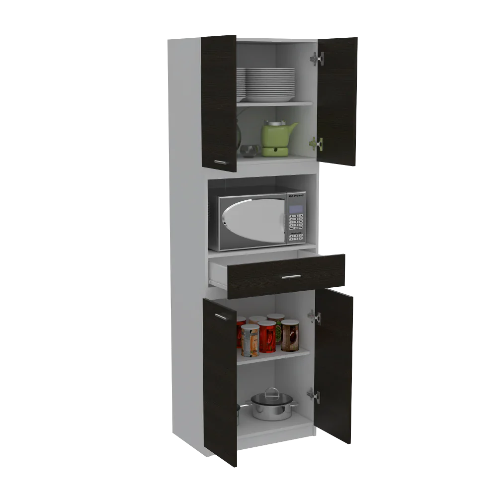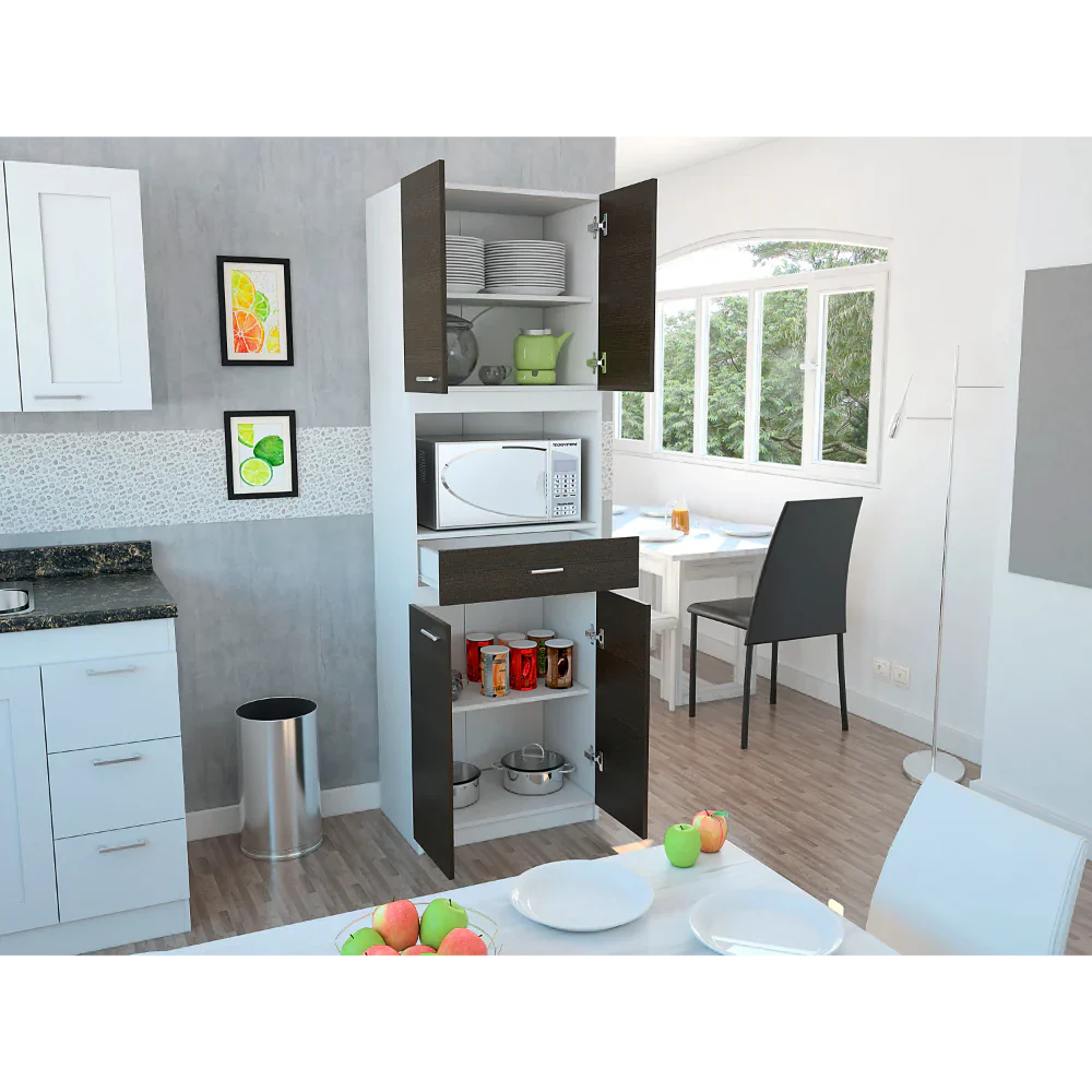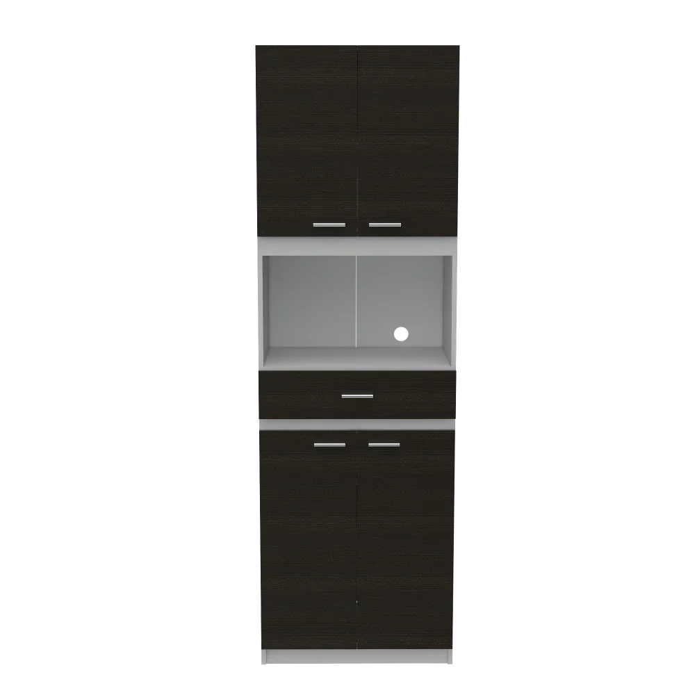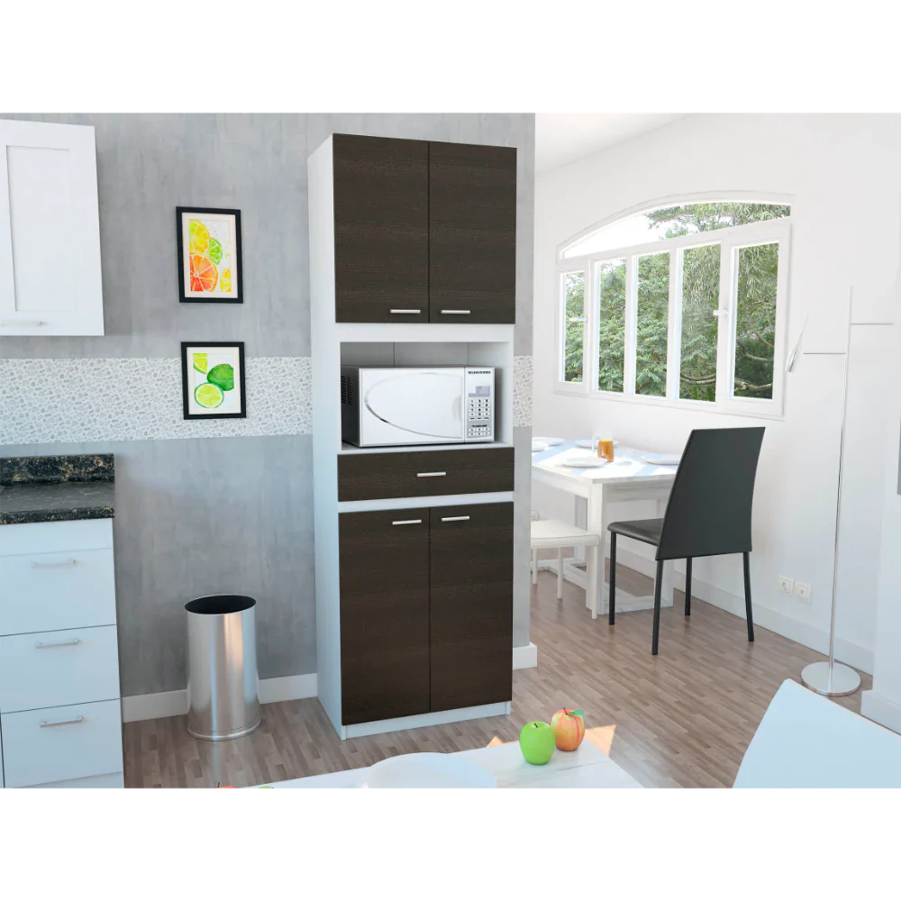 Características: Modulo de microondas con cuatri puertas abatibles, compartimiento superiores e inferiores para guardar alimentos, utensilios de cocina y/u otros, manijas metálicas, cajón central multiusos con correderas deslizables