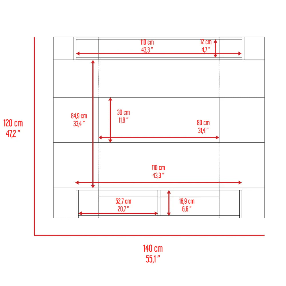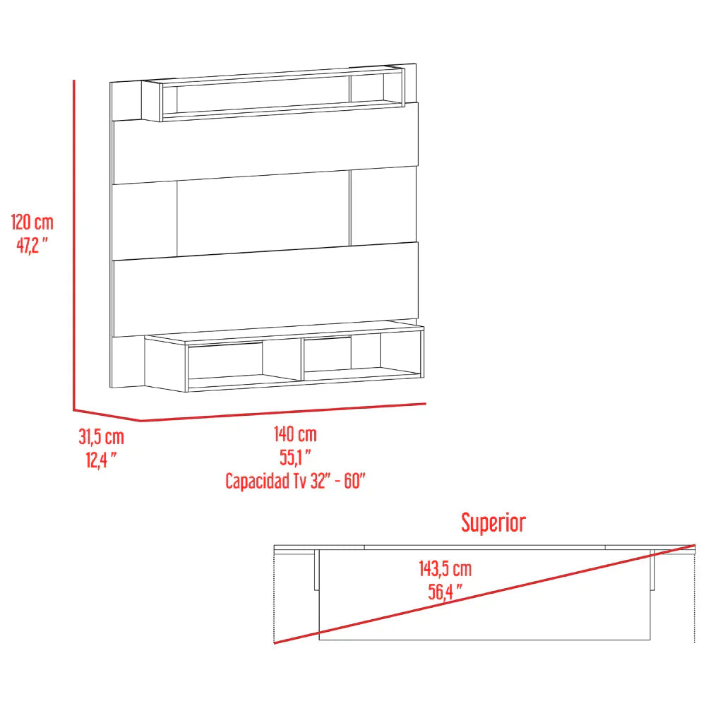 Características: Panel con espacio para TV desde 32” hasta máximo 60'', espacios para ubicar equipos de audio y video